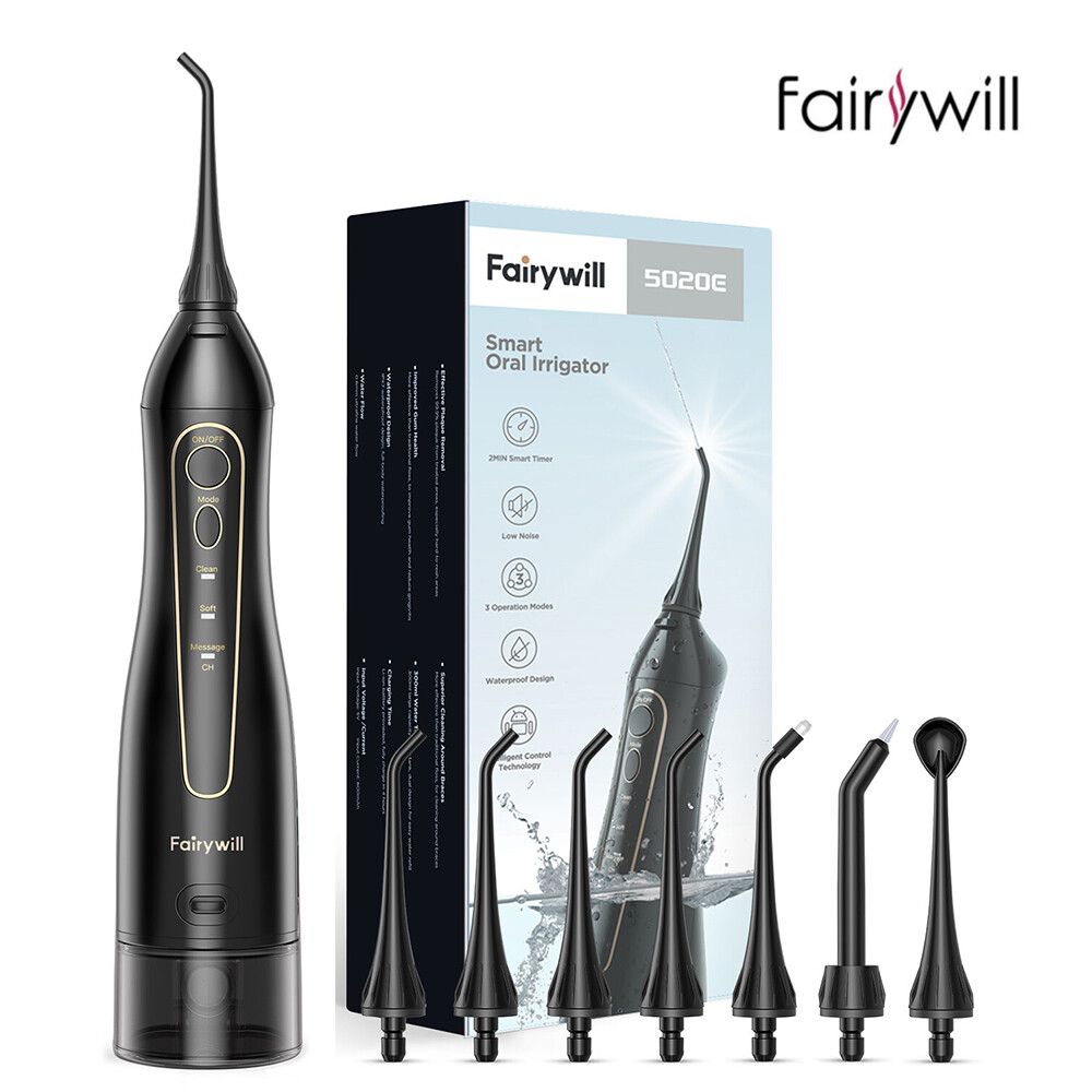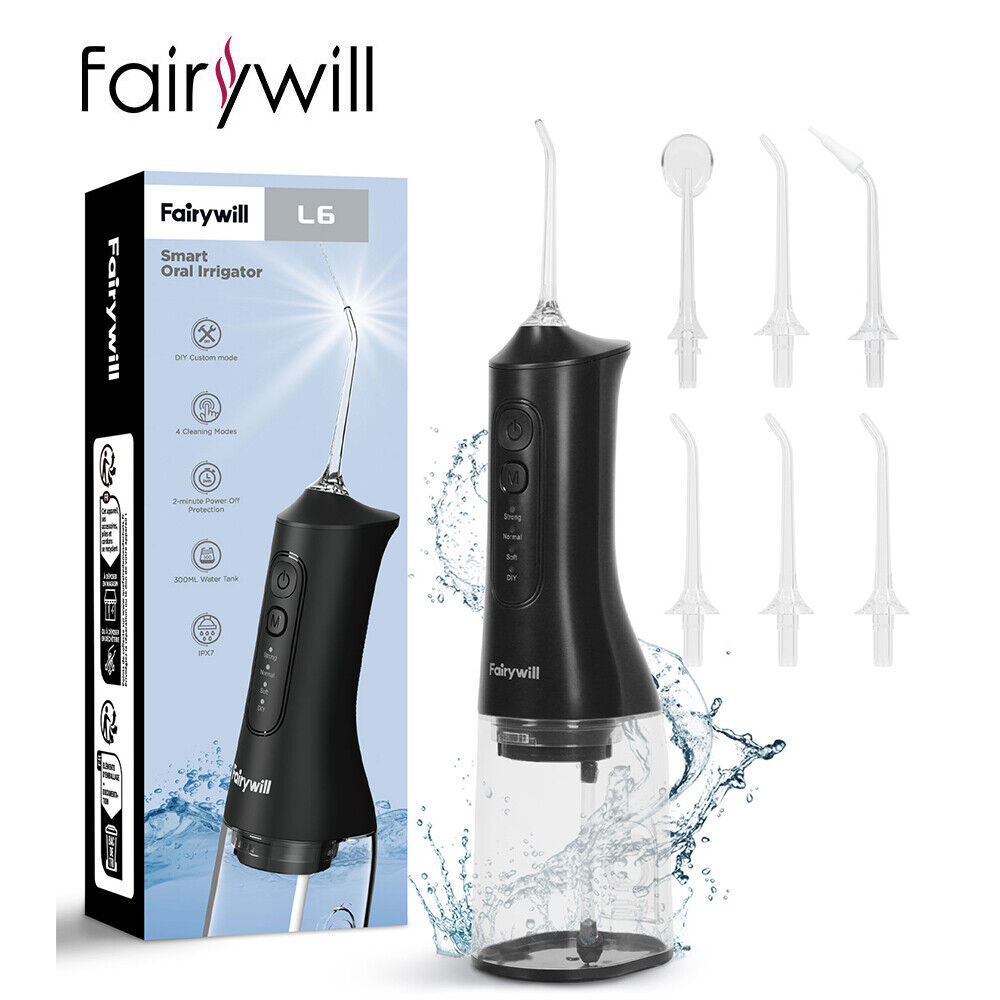 Fairywill Dental Water Flosser with Jet 6 Tip Floss Oral Irrigator Teeth Cleaner