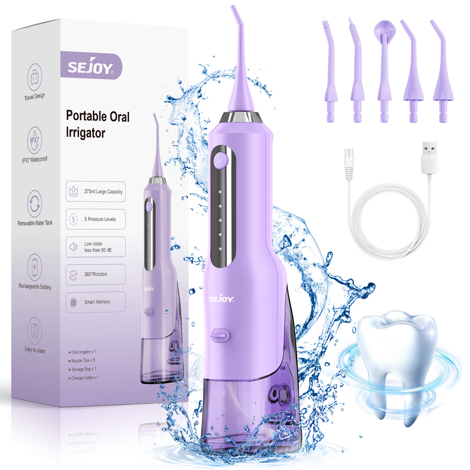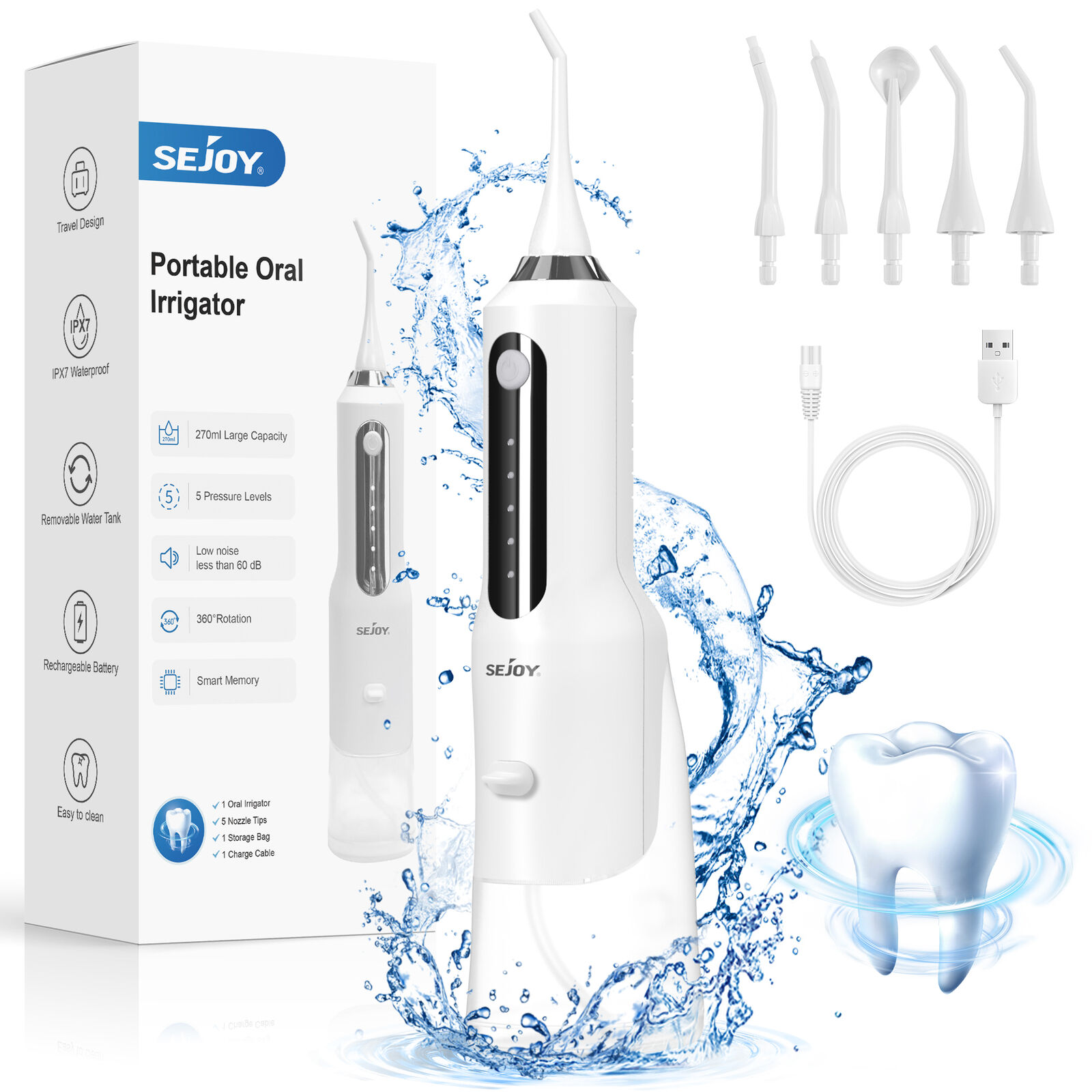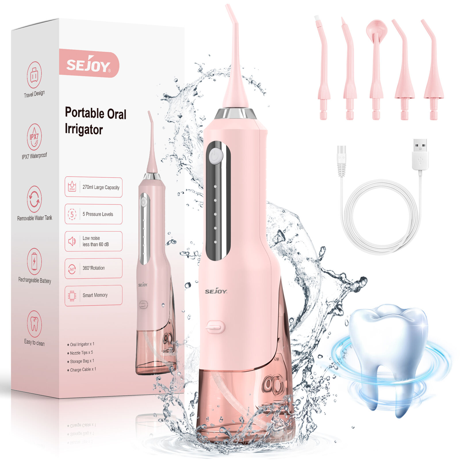SEJOY Water Flosser Cordless Dental Oral Irrigator Floss Teeth Cleaner 5Jet Tips