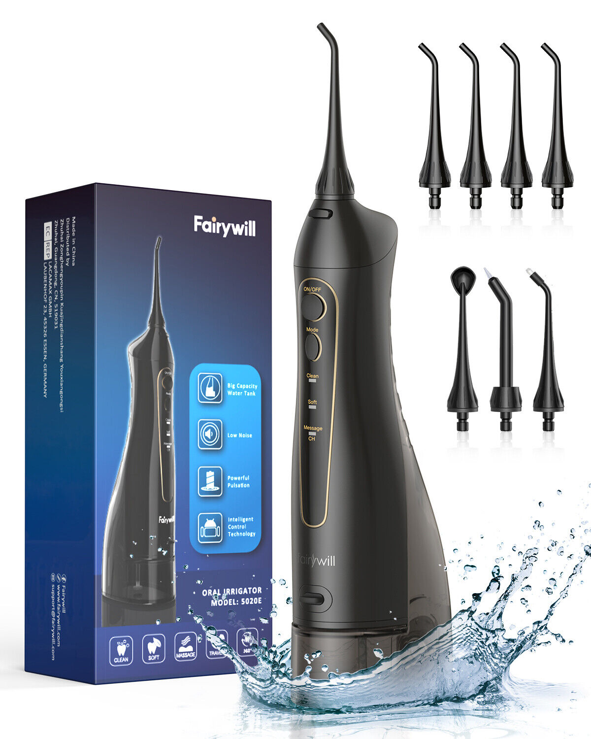 Fairywill Cordless Water Flosser Floss Dental Oral Irrigator Teeth Cleaner 7 Tip