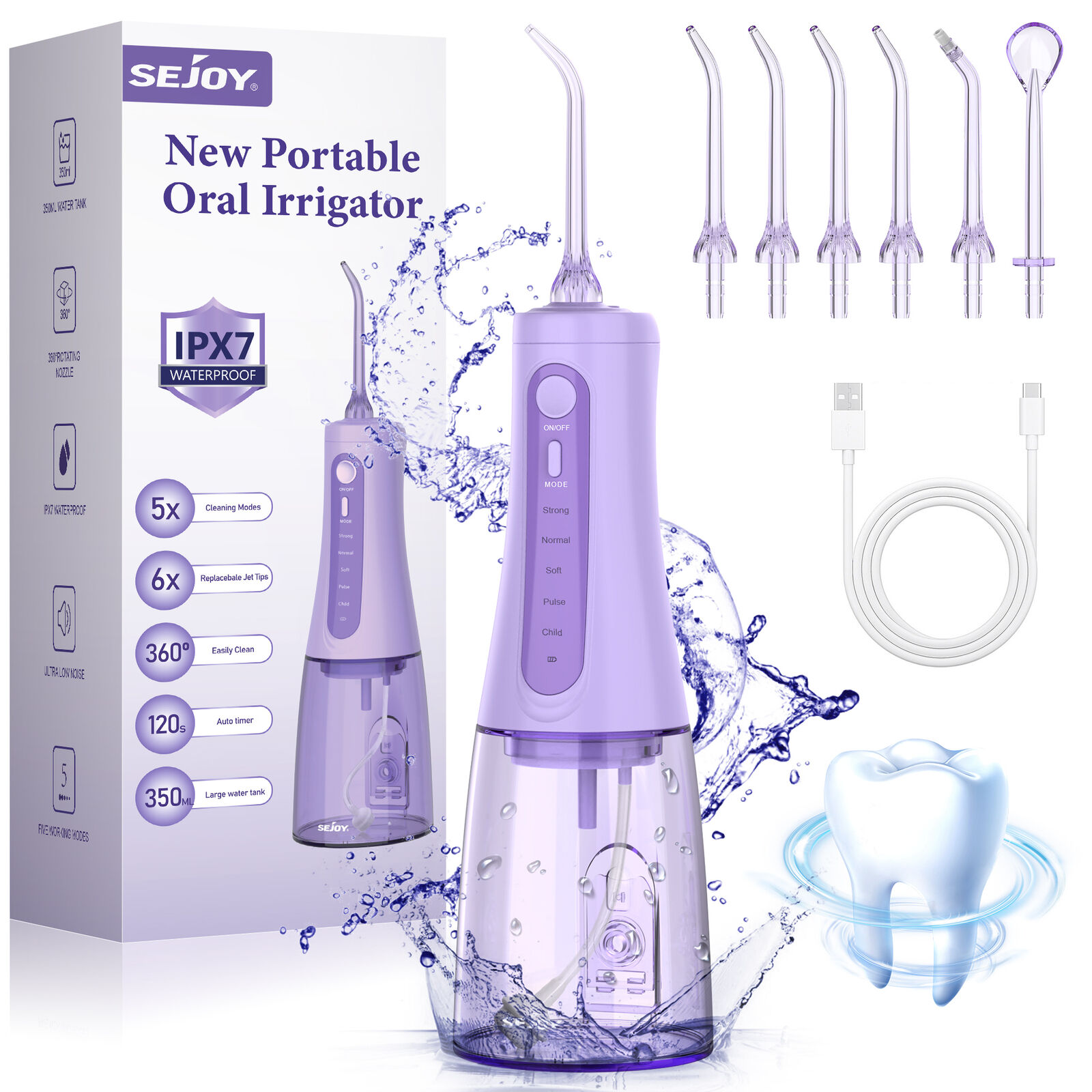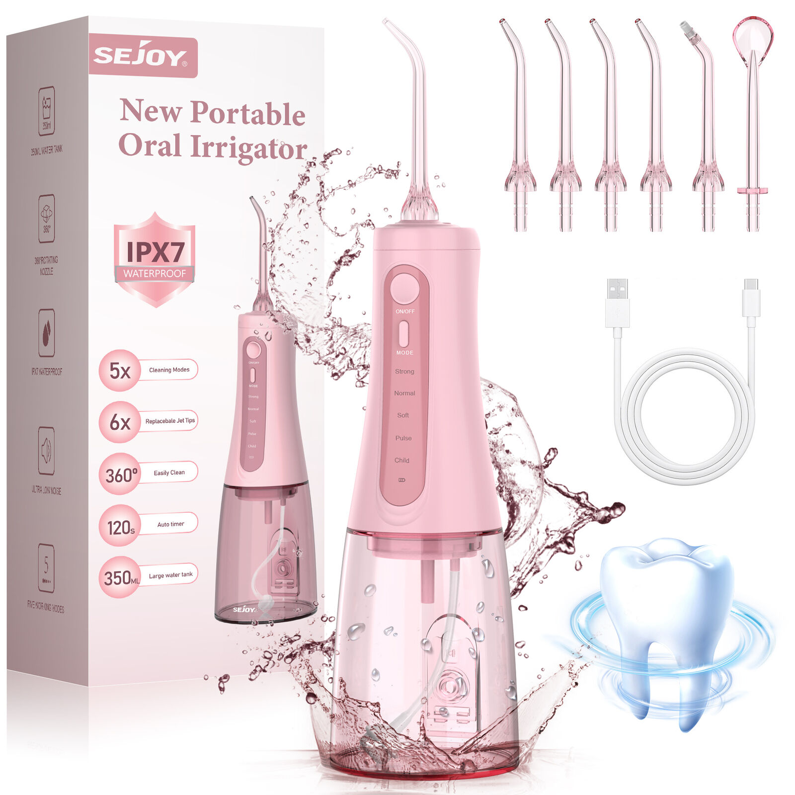 SEJOY Water Flosser Cordless Dental Oral Irrigator 5 Mode 6 Jet Tips Tooth Floss