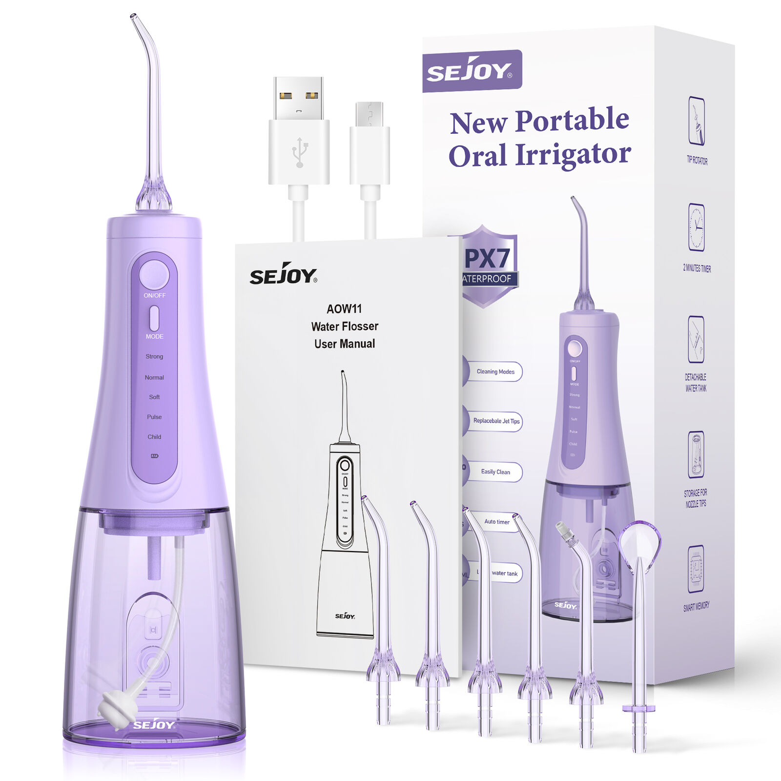 SEJOY Water Flosser Cordless Dental Oral Irrigator 5 Mode 5 Jet Tips Tooth Floss