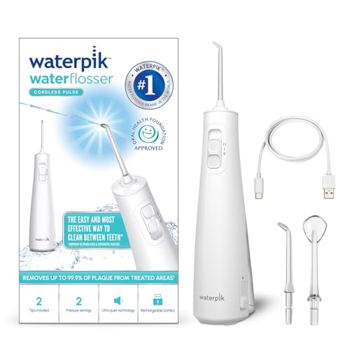 Waterpik Pulse Water Flosser Cordless, Oral Health Foundation Approved, Water Flosser and Plaque Remover for Teeth, 2 x Water Floss Pressure Settings, 45 Seconds of Flossing, 2 x Tips Included