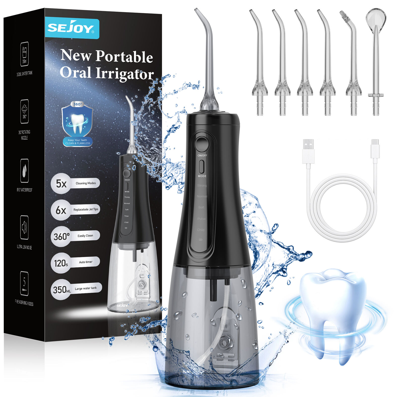 SEJOY Water Dental Flosser Cordless Oral Irrigator 350ML 6 Jet Tips Tooth Floss