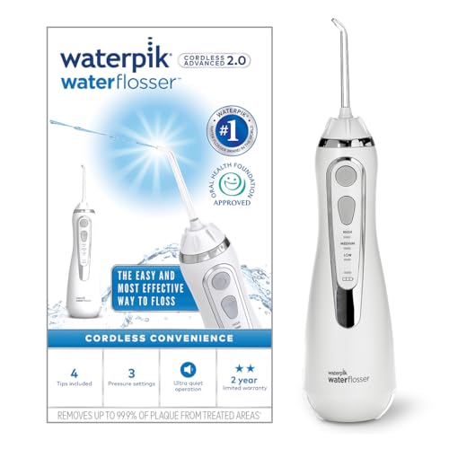 Waterpik Cordless Freedom Water Flosser, Portable and Waterproof Battery Powered Dental Plaque Removal Tool, Ideal for Travel, Small Bathrooms or In-Shower Use, White (WF-03UK010), White