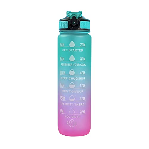 1000ml Sports Water Bottle with Time Marker, Water Bottle, Gym Kettles Leak Proof Straw Gradient and Rope Drinkware Adults Kids for School, Gym, Yoga, Outdoor Sports