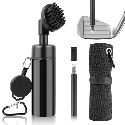 Pylimaius Golf Club Cleaner Kit with Groove Sharpener Tool and Towel & Retractable Clip, Nylon Cleaner Brush & 130ml Leak-proof Water Spray Bottle, Essential Golf Accessories for Men