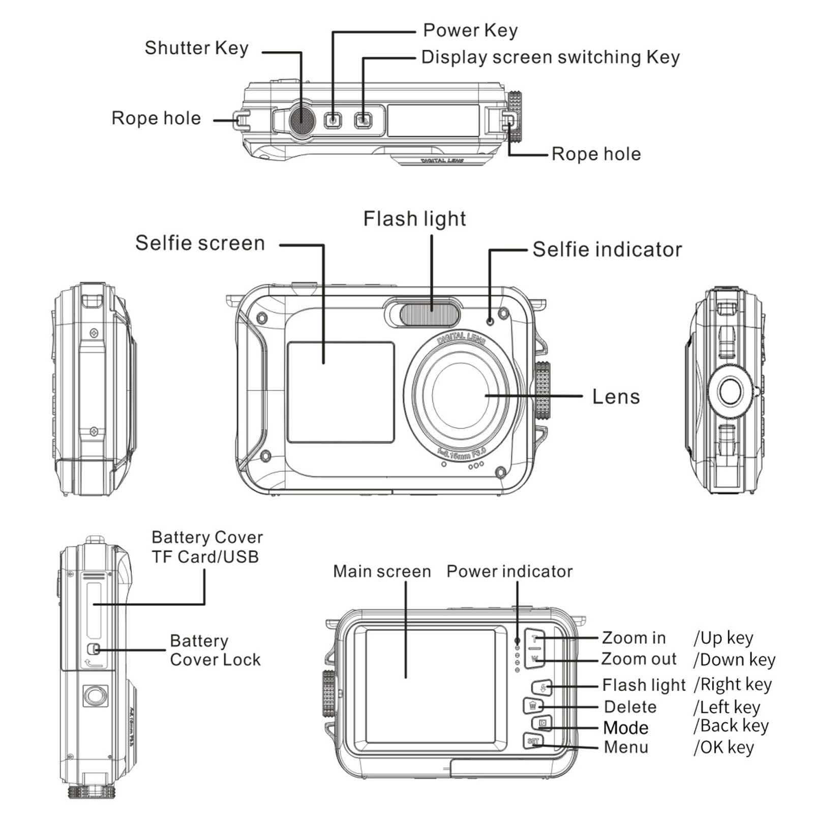 Full HD 2.7K 48MP 10ft Water Resistant Underwater Digital Camera 16X Digita OU