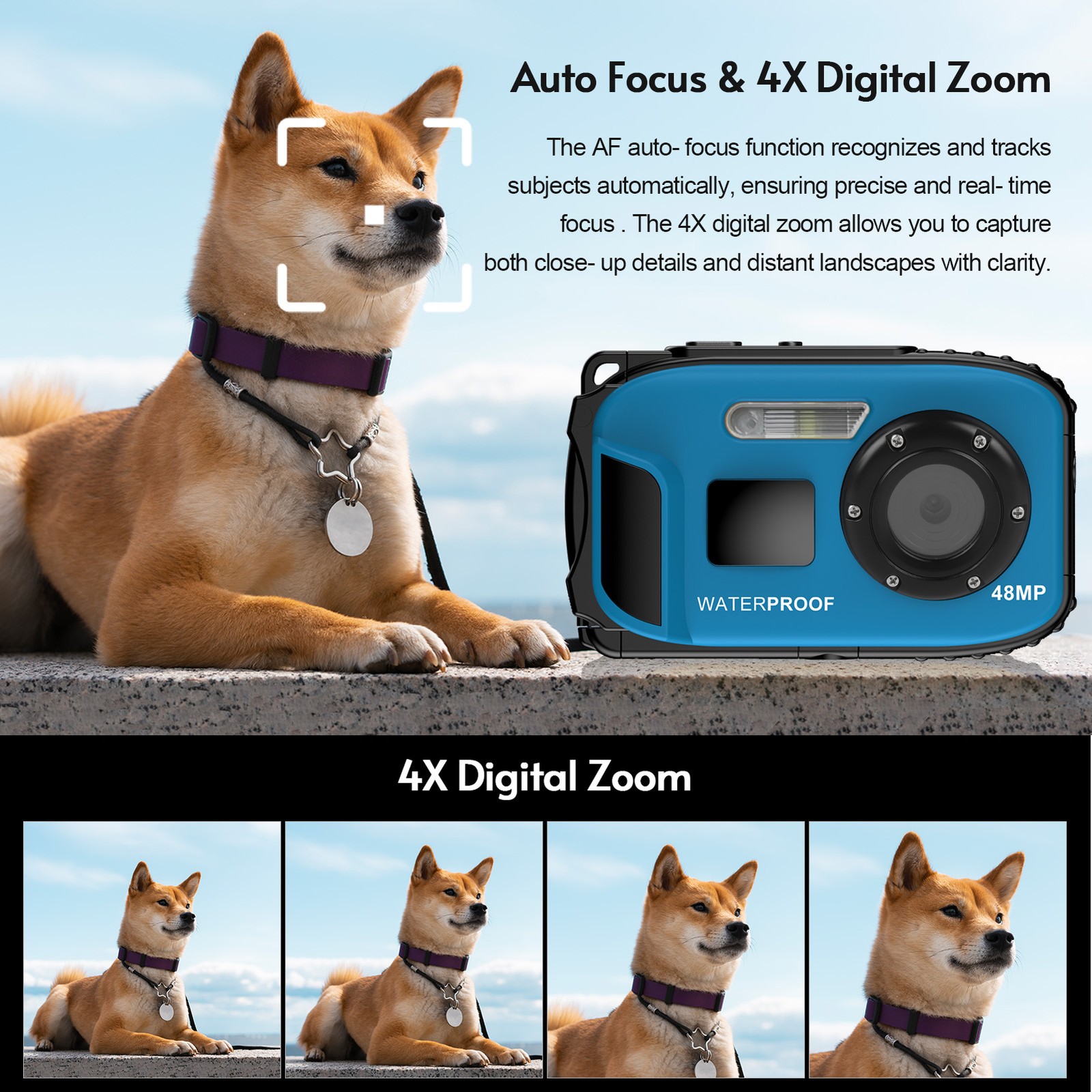 BluE Full HD 2.7K 48MP 10ft Water Resistant Underwater Digital Camera 16X D