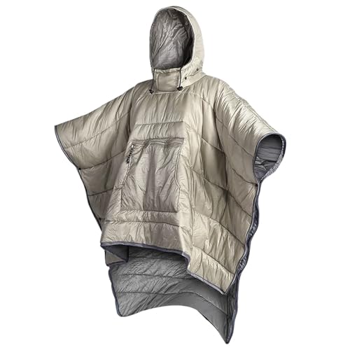 Wearable Sleeping Bag Hoodie Blanket Portable Honcho Poncho Warm Cover Coat Windproof Water-Resistant Cloak Cape For Outdoor Camping(Light Grey)