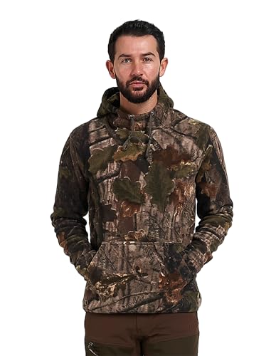 JACK PYKE Fieldman Fleece Hoodie for Men 250g – Warm, Lightweight, Water-Resistant Outdoor Pullover Hoodie with Drawstring Hood & Pocket – Perfect for Hunting, Fishing, Camping – English Oak Large