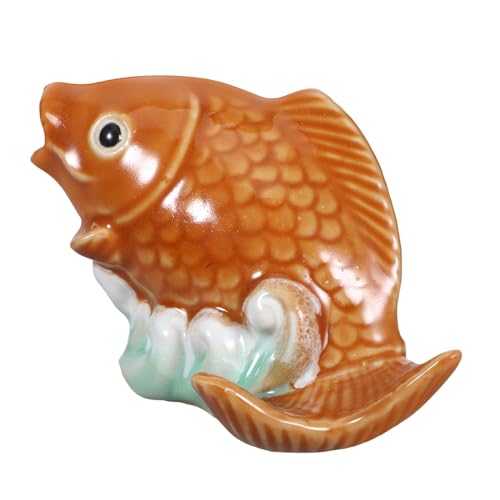 FIXOSHEE Ceramic Koi Fish Sculpture Garden Ornament Outdoor Fountain Nozzle Water Spray Feature for Courtyard Decor Resistant to Fading Easy to Clean