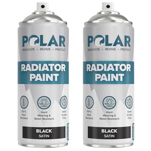 Polar Satin Black Radiator Spray Paint - 2 x 400ml | Heat Resistant up to 100ºC | Quick Drying & No Primer needed | Exterior Surfaces of Radiators & Hot Water Tanks | Heat Resistant Radiator Paint