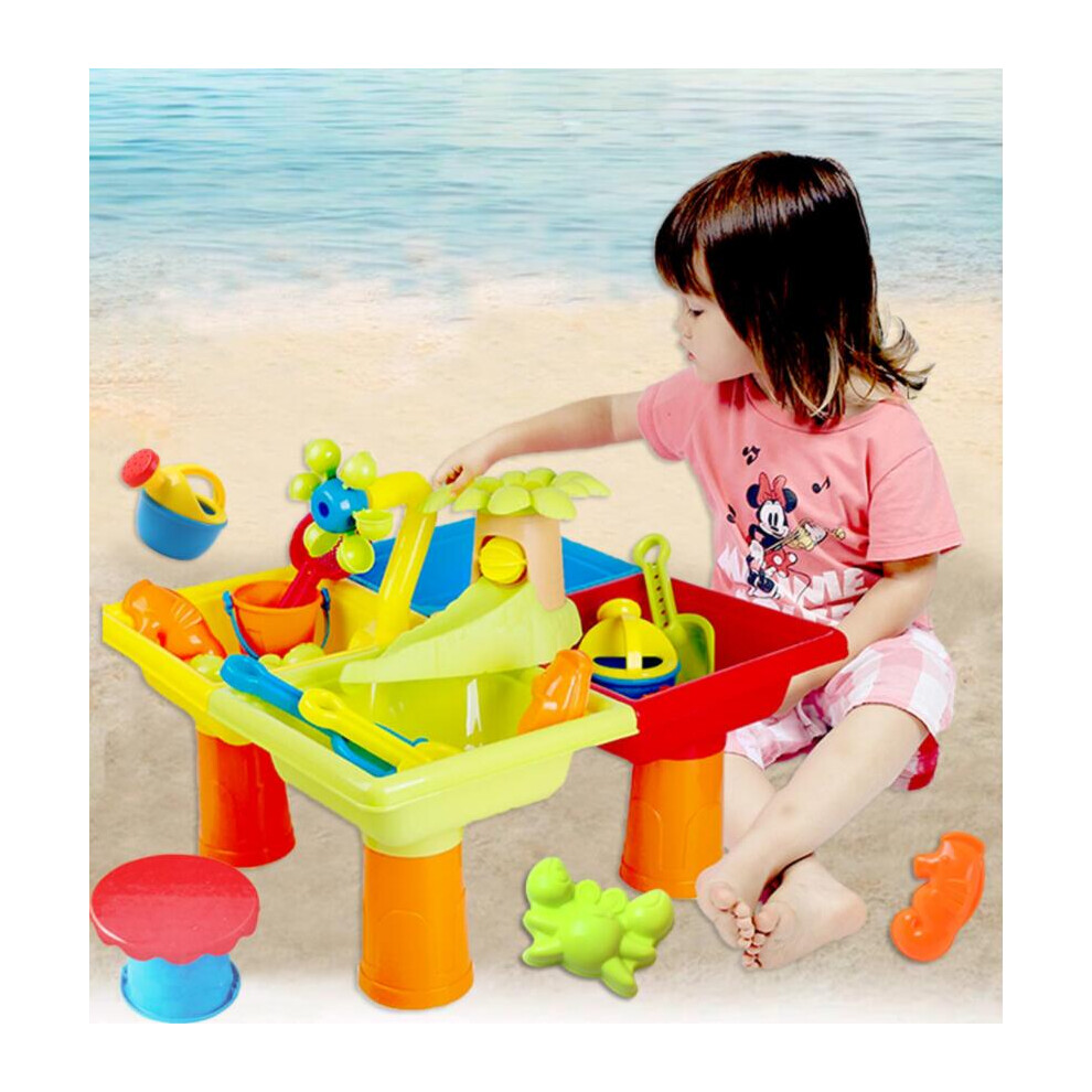 Sand and Water Table Set with Lid Cover Beach Toys Outdoor Garden Kit Kids Summer for Toddlers