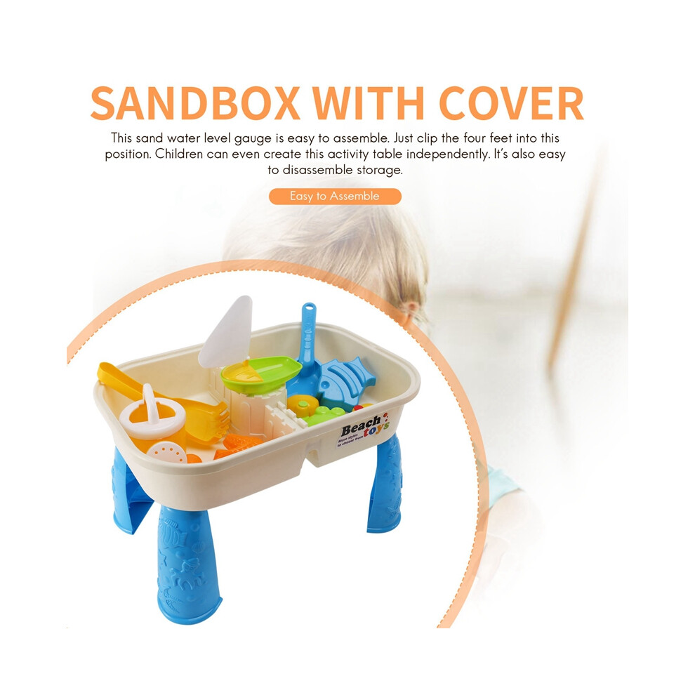 Sand and Water Table Set with Lid Cover Beach Toys Outdoor Garden Kit Kids Summer Beach for Toddlers Kids