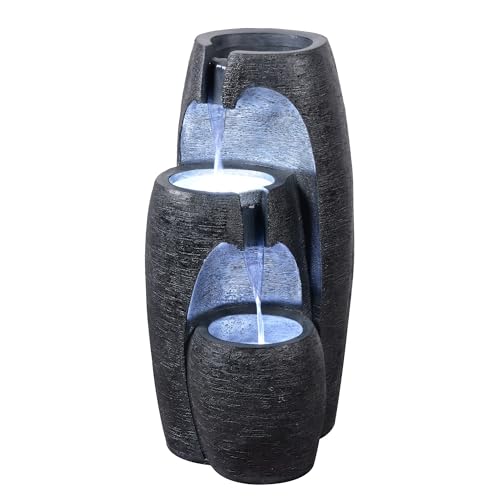 Teamson Home Garden Outdoor Water Feature Modern 3-Tier Cascading Urn Water Fountain With LED Lights Grey