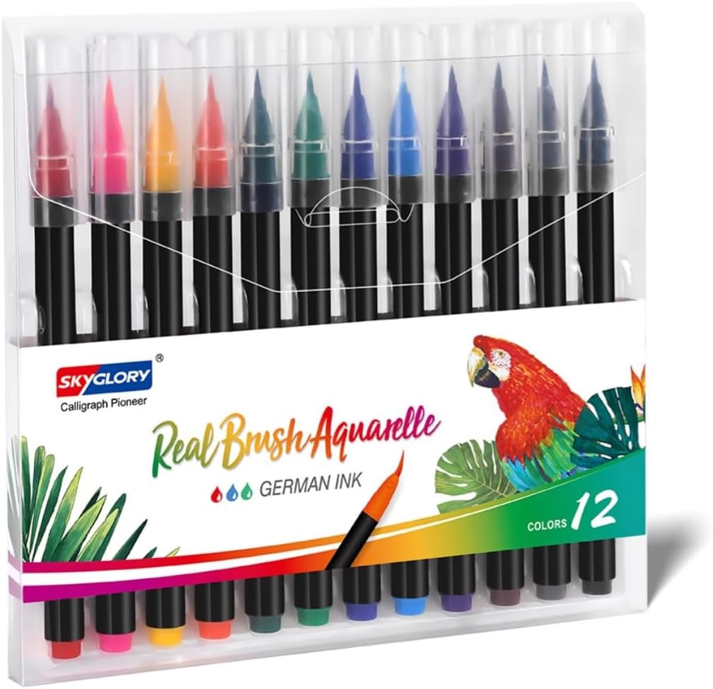SKYGLORY Watercolour Brush Pens Set-12/24/36 Vivid Colours Art Colouring Pens fo
