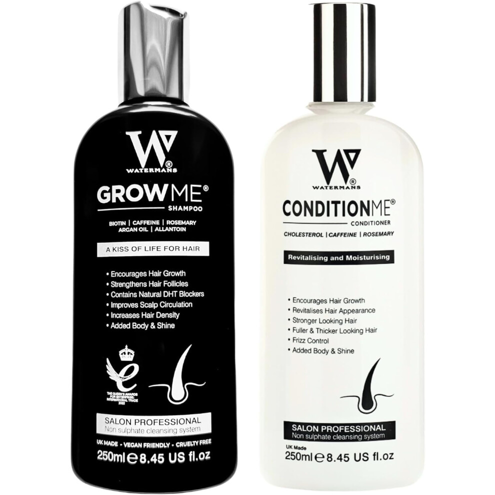 Hair Growth Shampoo & Conditioner by Watermans UK Biotin, Argan Oil, Allantoin, Rosemary, Niacinamide, Lupin. Male & Female Hair Loss Products