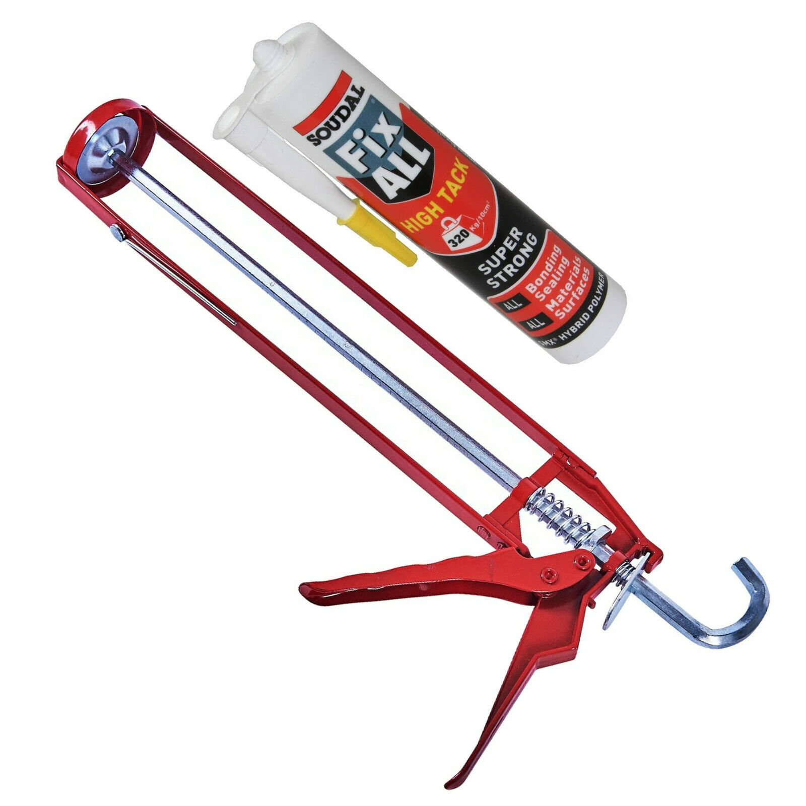 Sealant Gun & Soudal Fix All High Tack Hybrid Polymer Strong Waterproof Adhesive