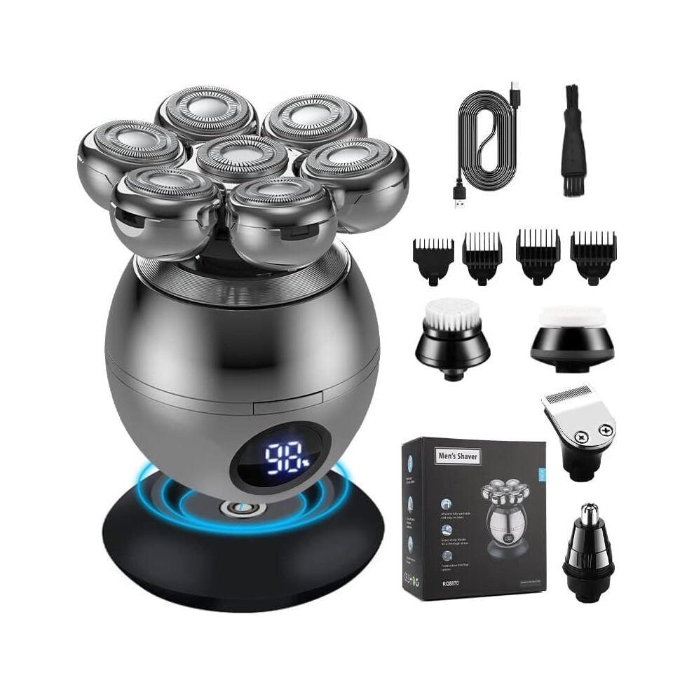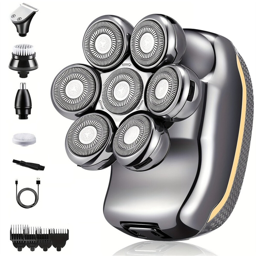 6-in-1 Men'S Electric Heads Shaver Rechargeable Cordless Hair Shaving for Bald Man Waterproof Wet Dry Beard Trimmer