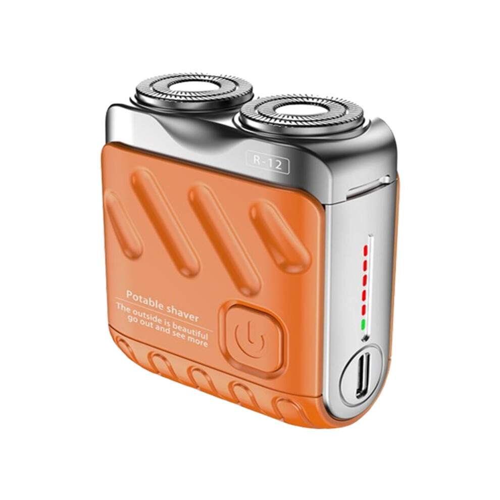 Electric Shaver Dual Ring Rotary Razor, Waterproof Pocket Beard Trimmer with LED Display, Magnetic Blade, Orange