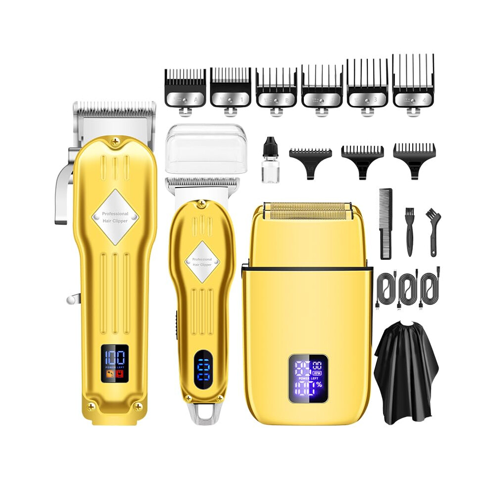 Professional Hair Clippers for Men, USB Rechargeable Waterproof Beard Trimmer Set, Gold T-Blade Cordless Grooming Kit