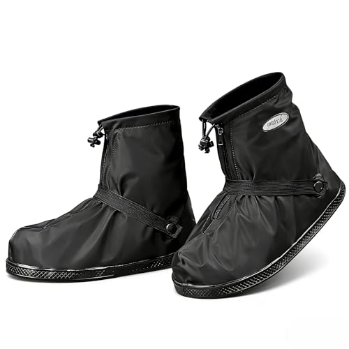 FDX Reflective Cycling Overshoes, Waterproof Bike Shoe Covers, Windproof Lightweight All Season Gaiters for Men and Women - Road Biking, MTB, Hi Viz Accessories Black, S