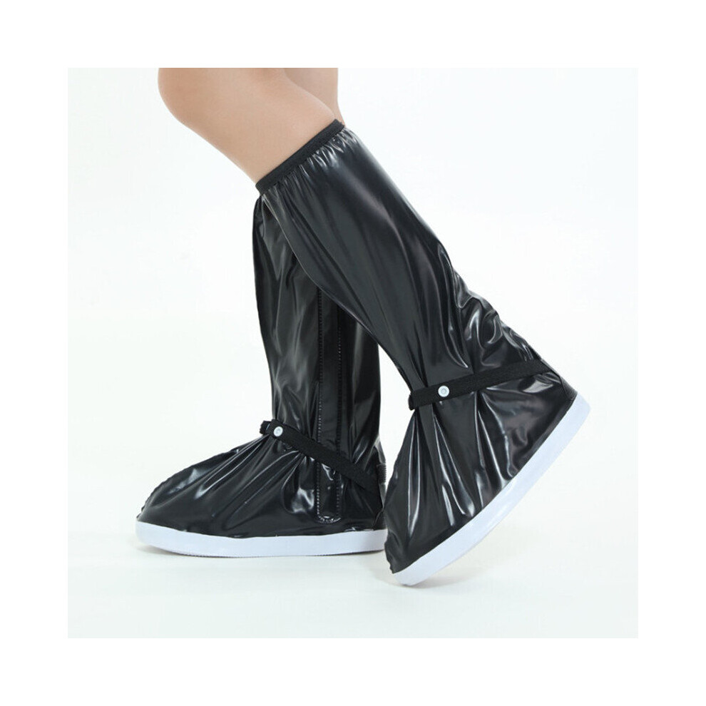 Women Men Cycling Waterproof Shoes Covers Knee-high Reusable Slip-resistant Overshoes Rain Boots Large Sizes FR71
