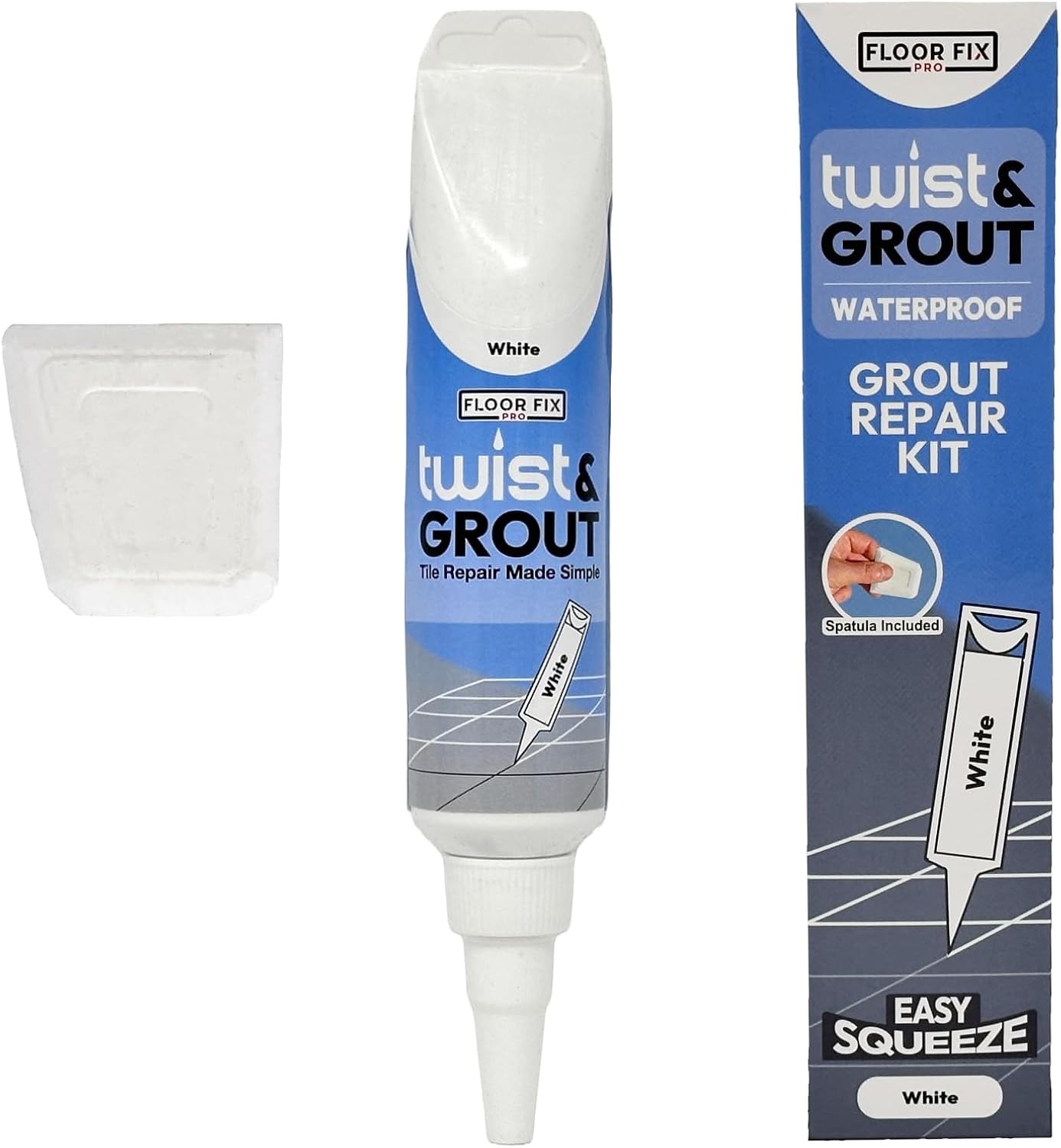 Floor-Fix Pro - Twist & Grout Repair Kit - Premixed & Waterproof Fast Tile Grout Reviver - Bathroom, Shower, Kitchen (White)