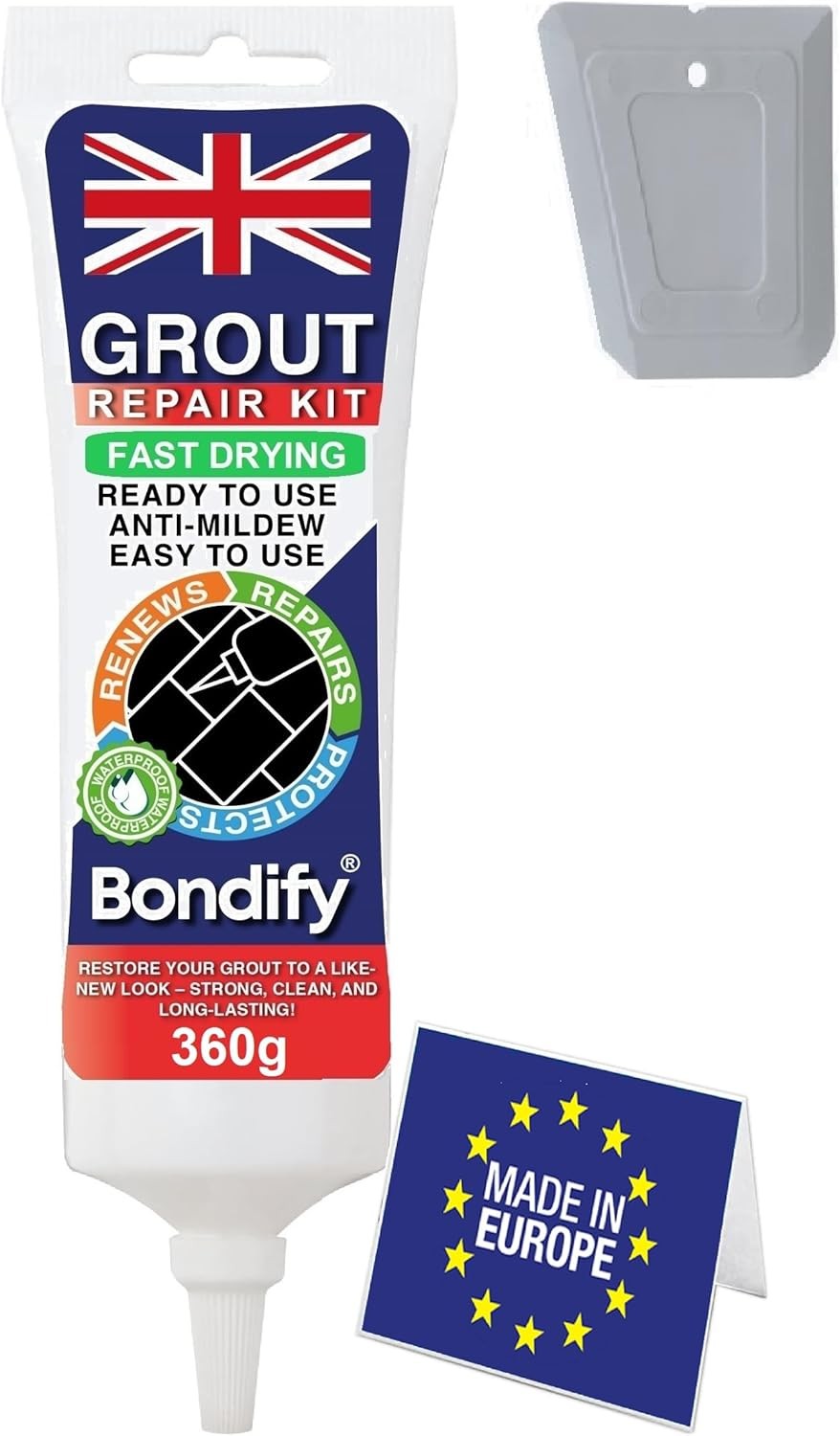 BONDIFY Waterproof Grey Grout Reviver 360g Fast Drying Anti Mould Repair Kit