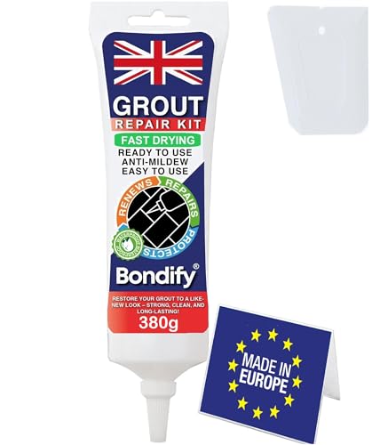BONDIFY Waterproof White Grout Repair Kit Ready Mixed, 380g FAST DRYING, EXTRA VOLUME Anti Mould White Tile Grout Reviver for Patio, Shower, Bathroom, Kitchen, Quick Drying Tile Gap Filler Ready Mixed
