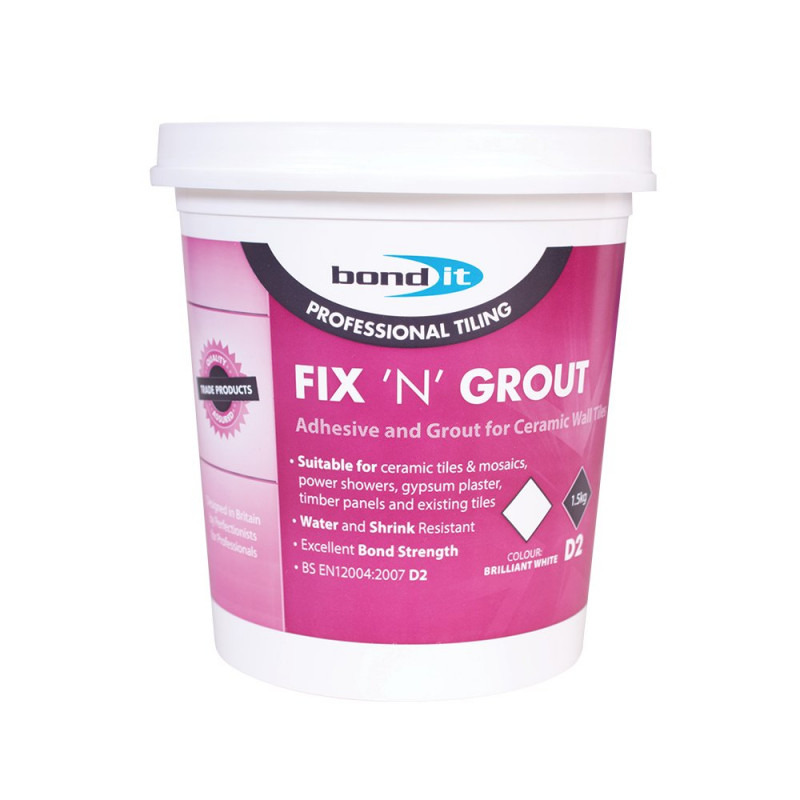 Bond It Fix 'n' Grout Waterproof D2 Mixed Tile Adhesive And Grout White 1.5Kg