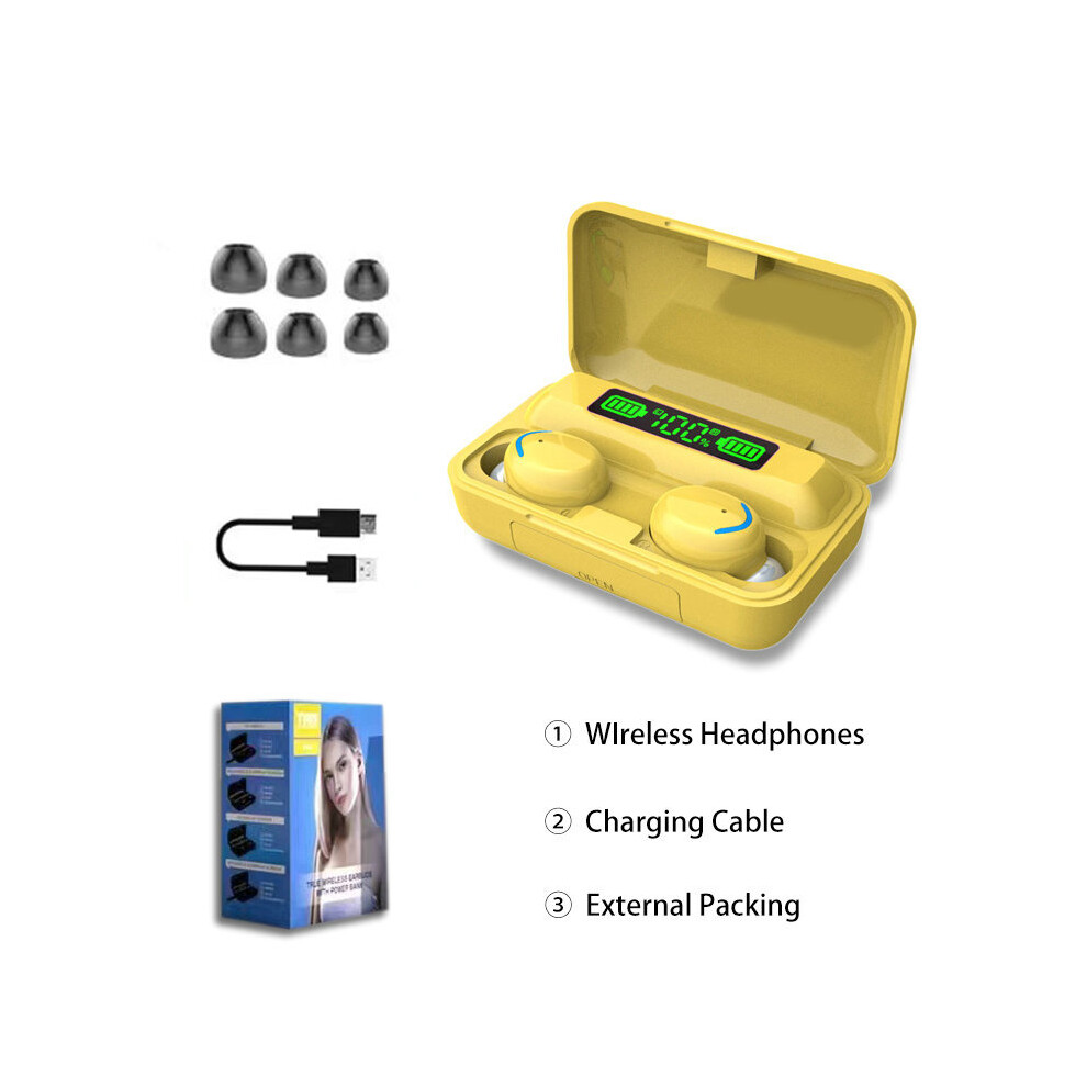 (a-C-Yellow) TWS 5.0 Bluetooth Earphone Wireless Headsets With Microphone 9D Stereo Sports Waterproof Earbuds Headphones 3500mAh Charging Box