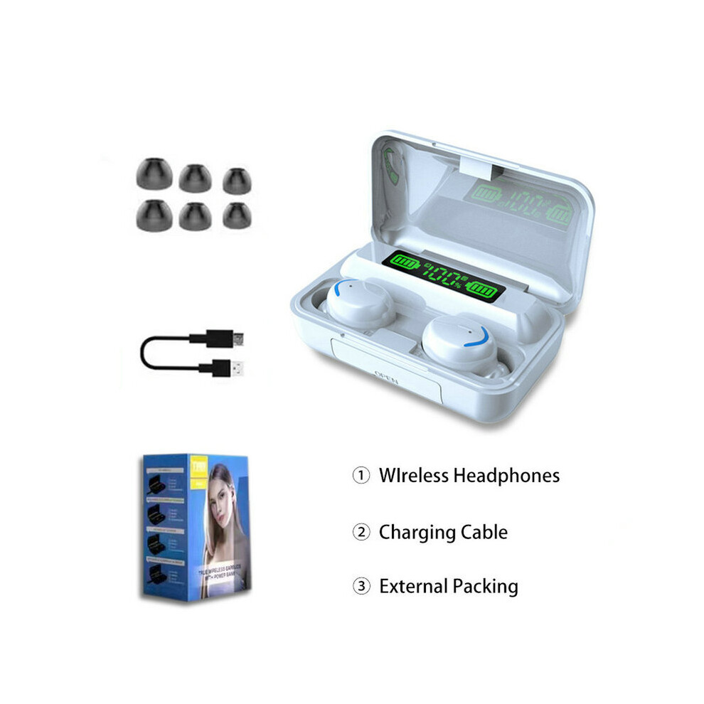 (White) TWS bluetooth Earphones Wireless Music Headphones Waterproof Sport Earbuds Mini Headset with Charging Box