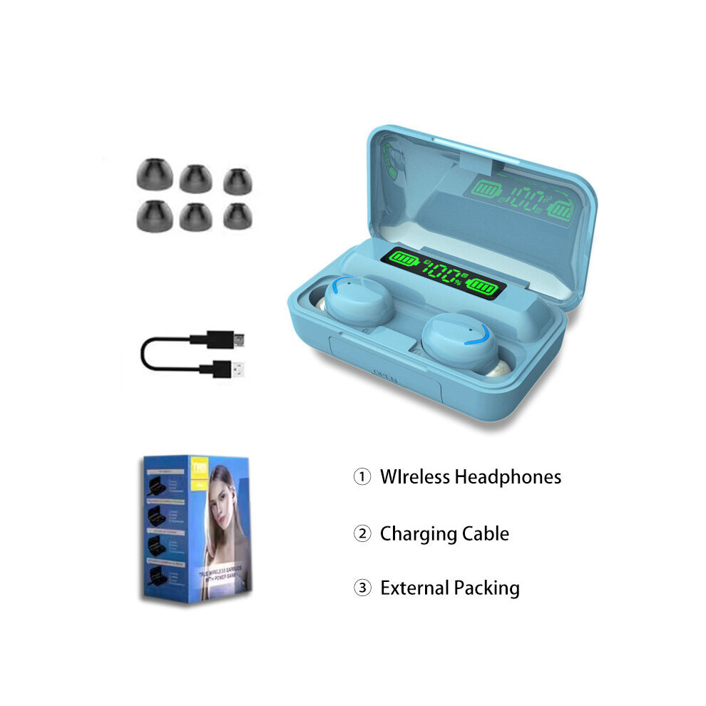 (a-D-Light Blue) TWS 5.0 Bluetooth Earphone Wireless Headsets With Microphone 9D Stereo Sports Waterproof Earbuds Headphones 3500mAh Charging Box