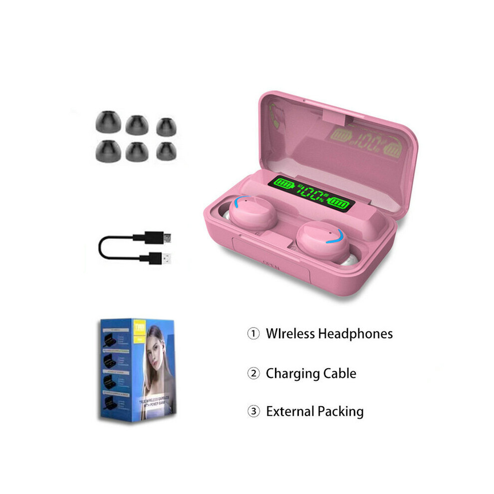 (a-E-Pink) TWS 5.0 Bluetooth Earphone Wireless Headsets With Microphone 9D Stereo Sports Waterproof Earbuds Headphones 3500mAh Charging Box