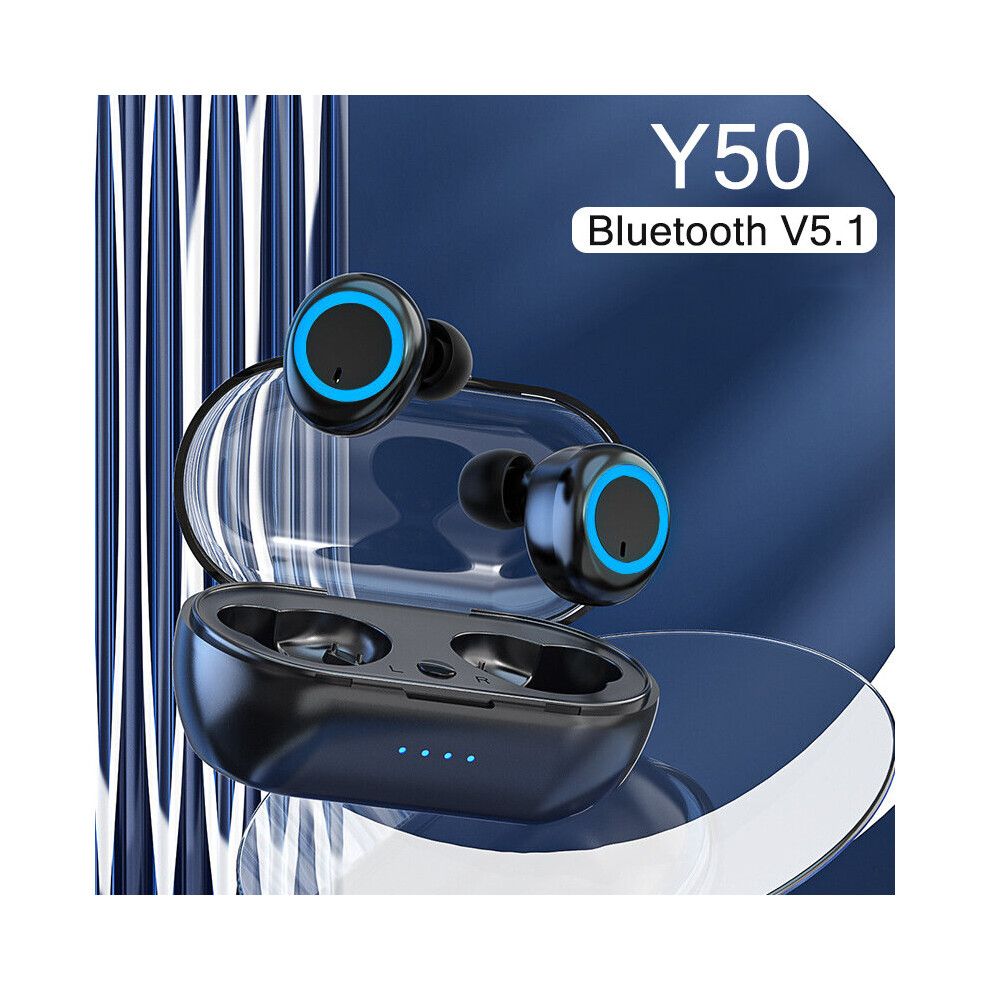 (a-Y50 black blue) TWS Wireless Bluetooth 5.0 Earphones Handfree Headset Gamer Sport Headphones Waterproof Earbuds Airbuds Earpods with Microfone
