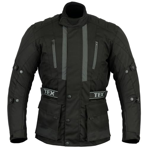 Texpeed Mens Black Motorcycle Motorbike Biker Waterproof Jacket With CE Armour (EN 1621-1) XL