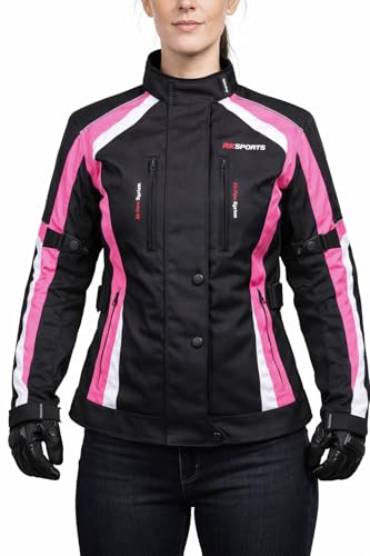 RKsports 747 Ladies WATERPROOF MOTORCYCLE MOTORBIKE JACKET BLACK CE ARMORS (22, Pink)