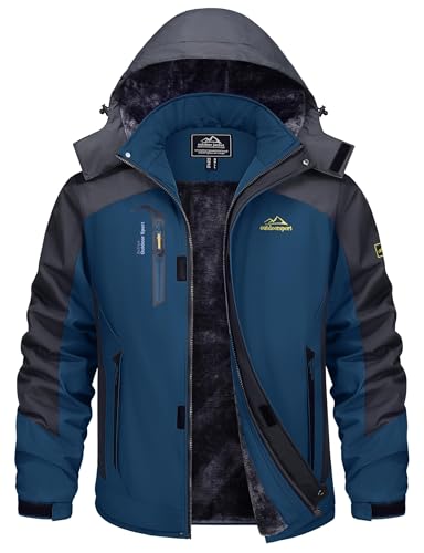 TACVASEN Military Jacket Men Fleece Waterproof Jacket Work Softshell Jacket Hooded Jacket Denim Outdoor Jacket Fleece Tactical Jacket Waterproof Raincoat Motorbike Jacket with Zip Pocket Blue