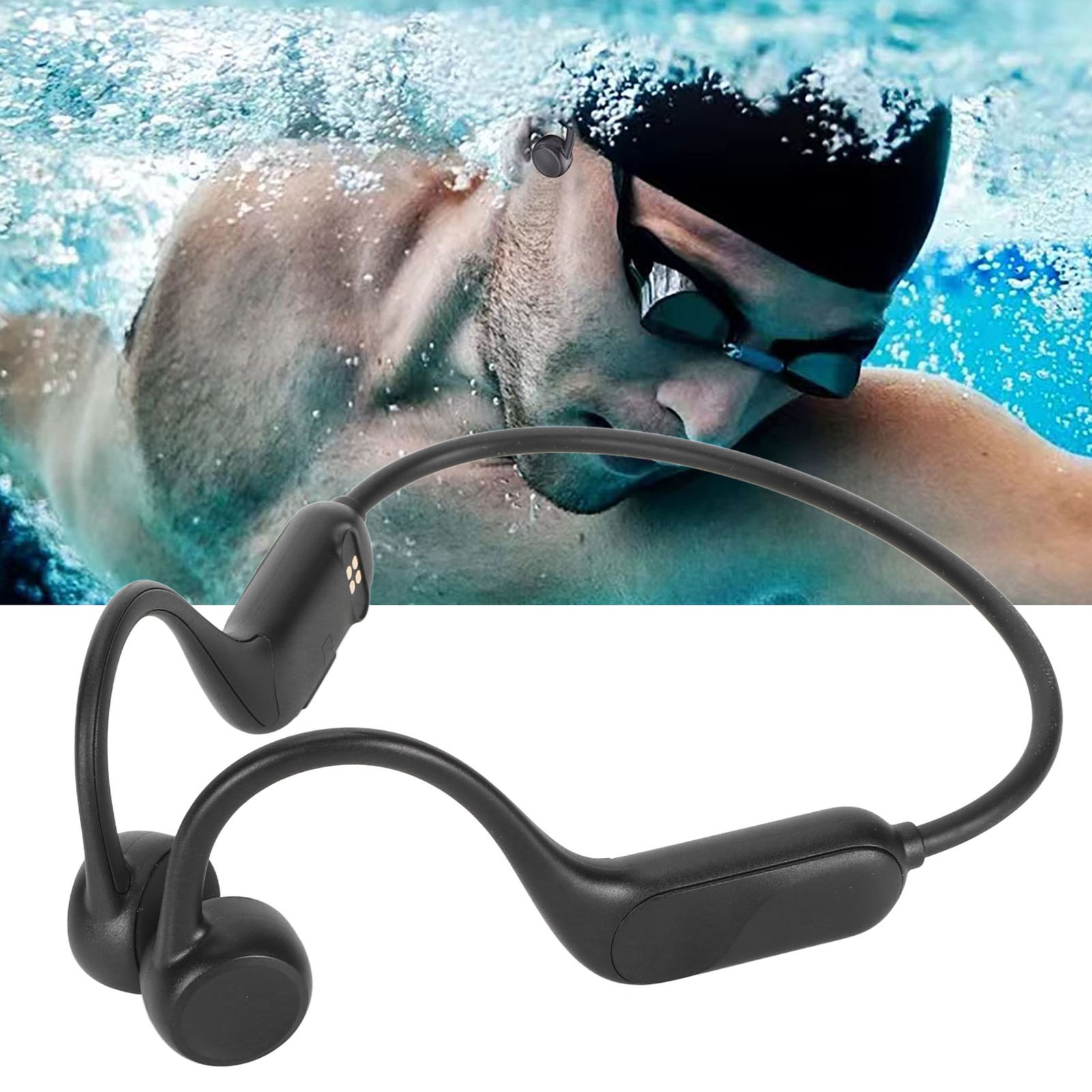 Swimming Headphones, IP68 Waterproof Bone Conduction Headphones Bluetooth 5.4 with MP3 Player 32 GB Storage, Wireless Sports Open Ear Underwater Earphones for Swimming, Running,Cycling,Surfing