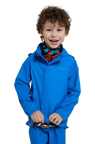 Mountain Warehouse Pakka Kids Waterproof Jacket - Wind Resistant, Lightweight,Breathable Rain Coat for Girls & Boys, Packaway Bag - For Rain, Autumn, Winter Cobalt Kids Size 9-10 Years