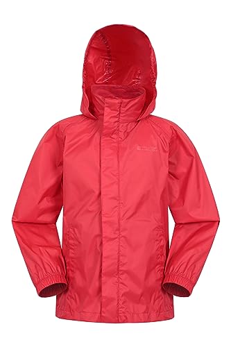 Mountain Warehouse Pakka Kids Waterproof Jacket - Wind Resistant, Lightweight,Breathable Rain Coat for Girls & Boys, Packaway Bag - For Rain, Autumn, Winter Red Kids Size 9-10 Years