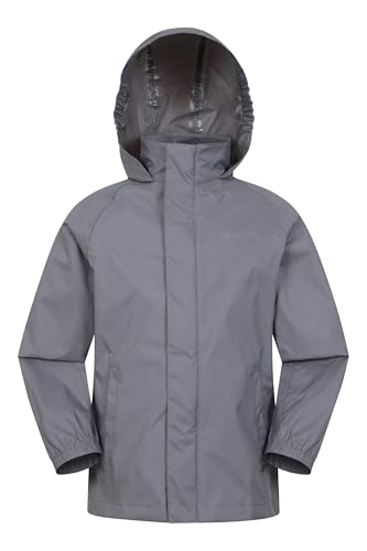 Mountain Warehouse Pakka Kids Waterproof Jacket - Wind Resistant, Lightweight,Breathable Rain Coat for Girls & Boys, Packaway Bag - For Rain, Autumn, Winter Grey Kids Size 9-10 Years