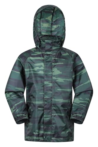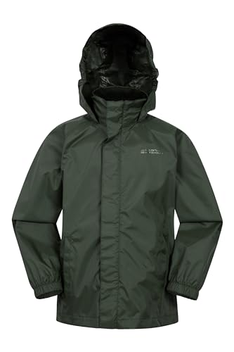 Mountain Warehouse Pakka Kids Waterproof Jacket - Wind Resistant, Lightweight,Breathable Rain Coat for Girls & Boys, Packaway Bag - For Rain, Autumn, Winter Green Kids Size 9-10 Years