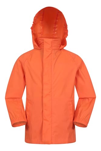 Mountain Warehouse Pakka Kids Waterproof Jacket - Wind Resistant, Lightweight,Breathable Rain Coat for Girls & Boys, Packaway Bag - For Rain, Autumn, Winter Orange Kids Size 9-10 Years