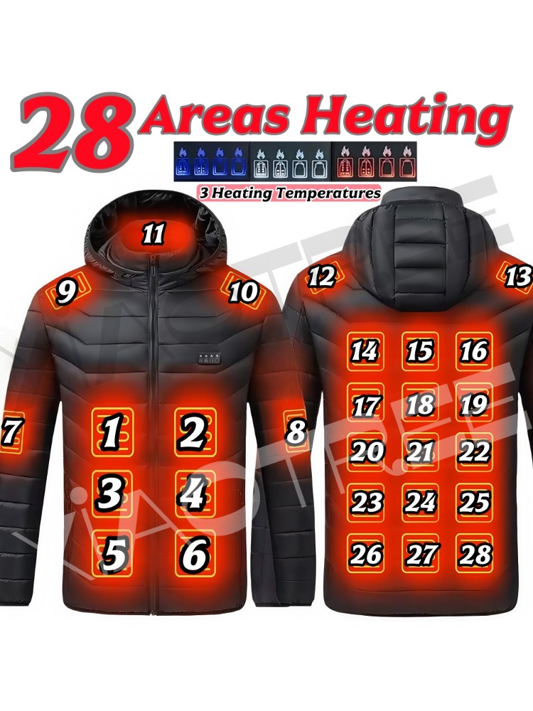 28 Areas Men Women's Heating Jacket Winter USB Heated Jackets Smart Heated Clothing Ski Camping Waterproof Warm Self Heating