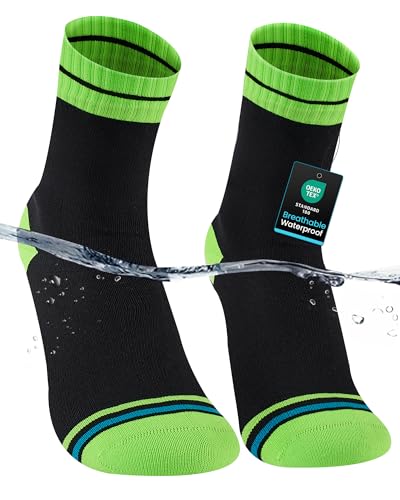 DRYMILE Active Waterproof Socks, Breathable Cushioned Running, Hiking, Winter Waterproof Socks for Men & Women - Ankle, Grey/Green, X-Large