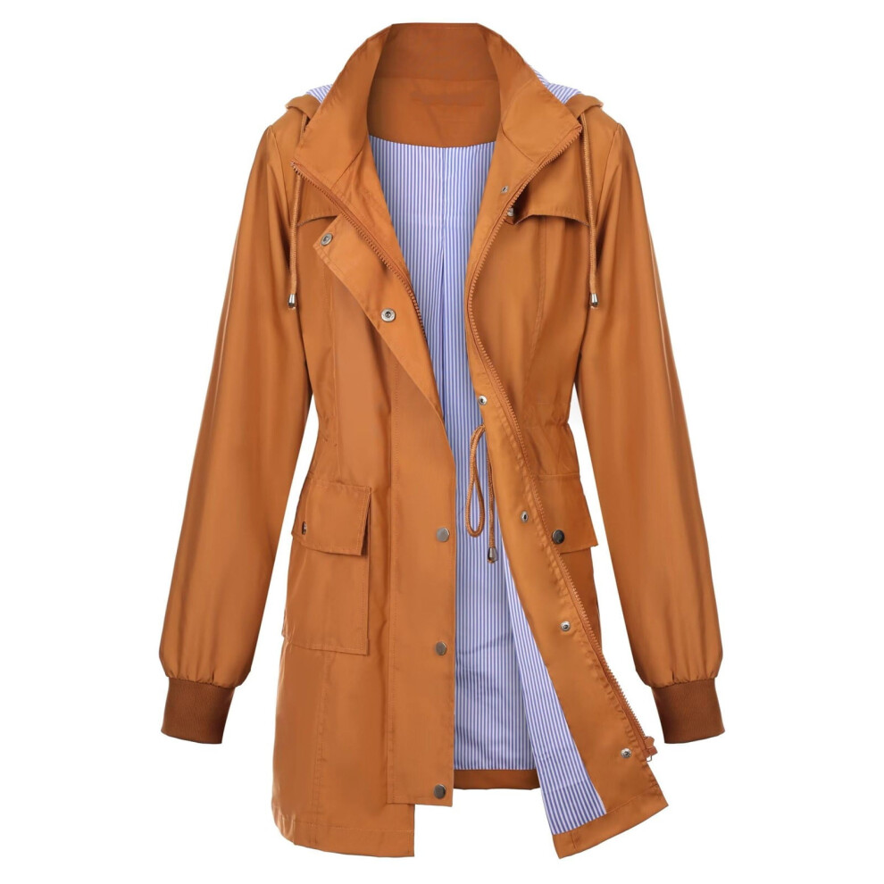 ANYOO Women Waterproof Raincoat Rain Jacket with Hood, Lightweight Long Rain Coat Windbreaker Trench, Khaki, One Size