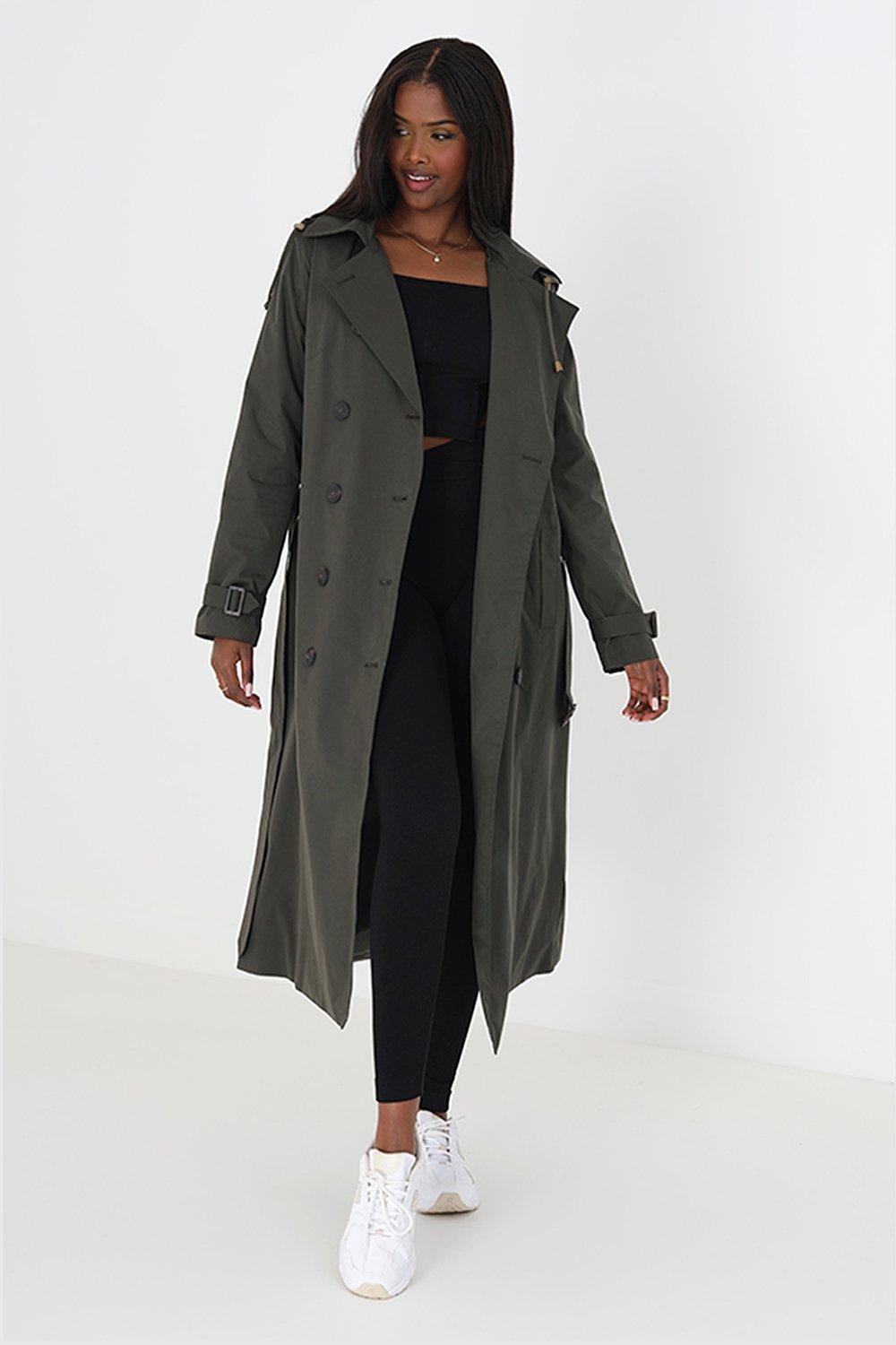 Double-Breasted Longline Trench Coat with Detachable Hood