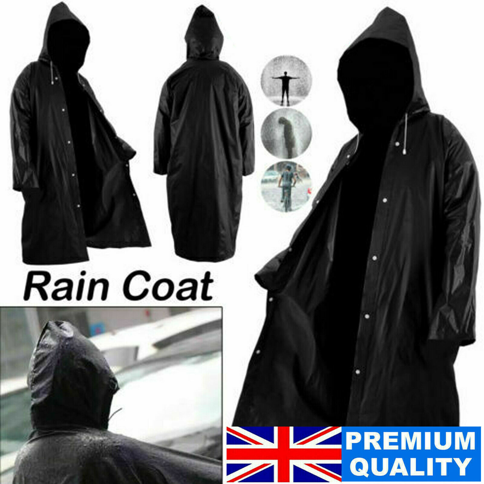 WATERPROOF RAIN COAT LONG PONCHO WOMEN MEN OUTDOOR RAINCOAT EVA CLOTH WITH HOOD